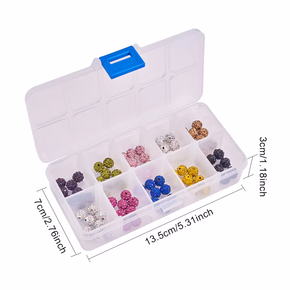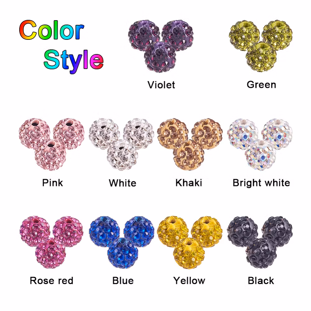 Strasspärlor av polymerlera 100 stycken i en box, 10 stycken av varje färg.