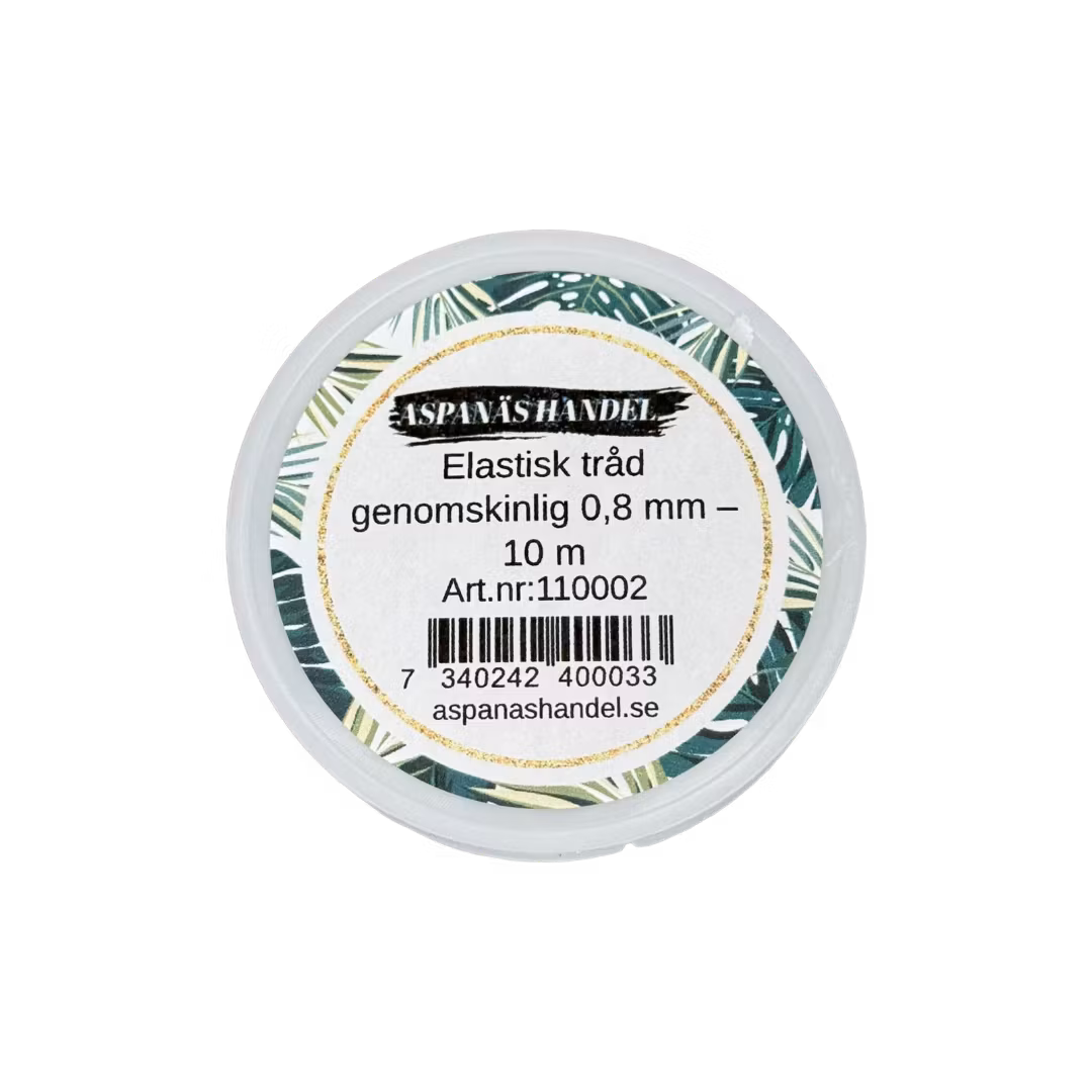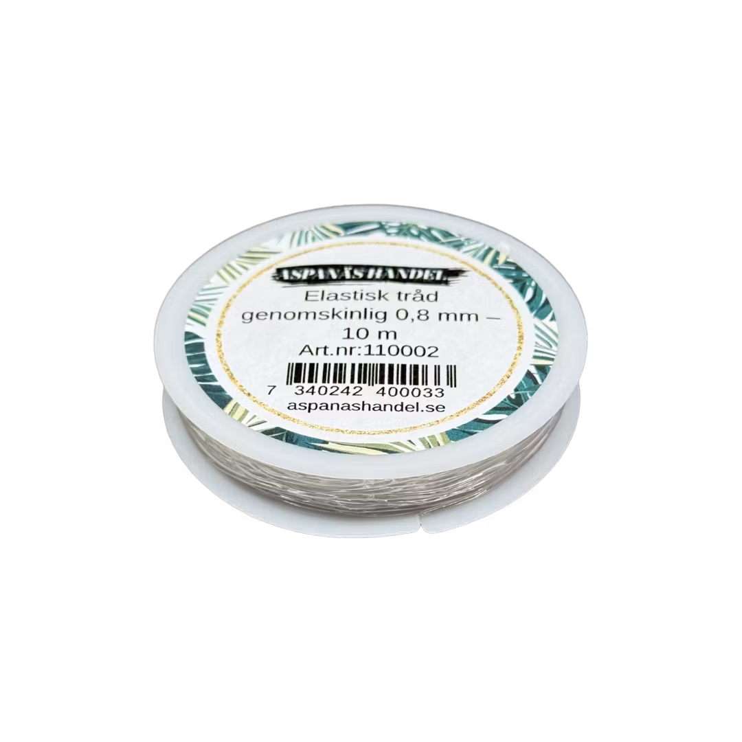 Denna genomskinliga elastiska tråd (0,8 mm) är ett utmärkt val för dig som vill skapa snygga och hållbara smycken med stretch. Tråden är lätt att arbeta med, enkel att knyta och passar perfekt till exempelvis pärlarmband, barnarmband, halsband och andra DIY-projekt där elasticitet behövs.