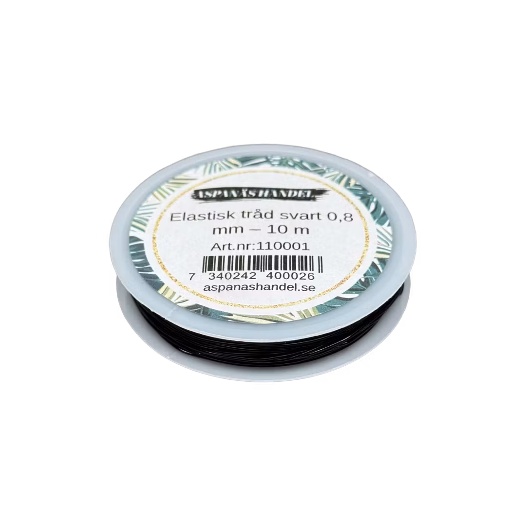 Denna svarta elastiska tråd (0,8 mm) är ett praktiskt val för dig som vill skapa snygga och hållbara projekt med stretch. Tråden är lätt att arbeta med, enkel att knyta och passar utmärkt till smyckestillverkning – exempelvis pärlarmband, barnarmband och andra DIY-projekt där elasticitet behövs.