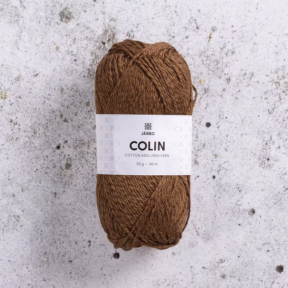 Järbo Colin är ett sportgarn i 60 % bomull och 40 % lin. I den uppdaterade versionen löper bomull och lin sida vid sida som trådar i stället för att blandas i fibrerna. Det lyfter fram materialens bästa egenskaper – bomullens mjukhet möter linets svala styrka – och ger en naturlig struktur med extra liv, fint fall och vacker melering. Garnet passar perfekt till somriga plagg och accessoarer.
