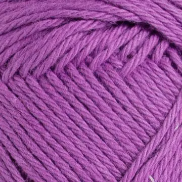 Järbo Nova Eko i Velvet Juice (djup bärig ton) är ett ekologiskt bomullsgarn som motsvarar 8/4, det ger jämn struktur och tydliga maskor – toppen för både enkla basplagg och mönsterstickning/virkade rutor.