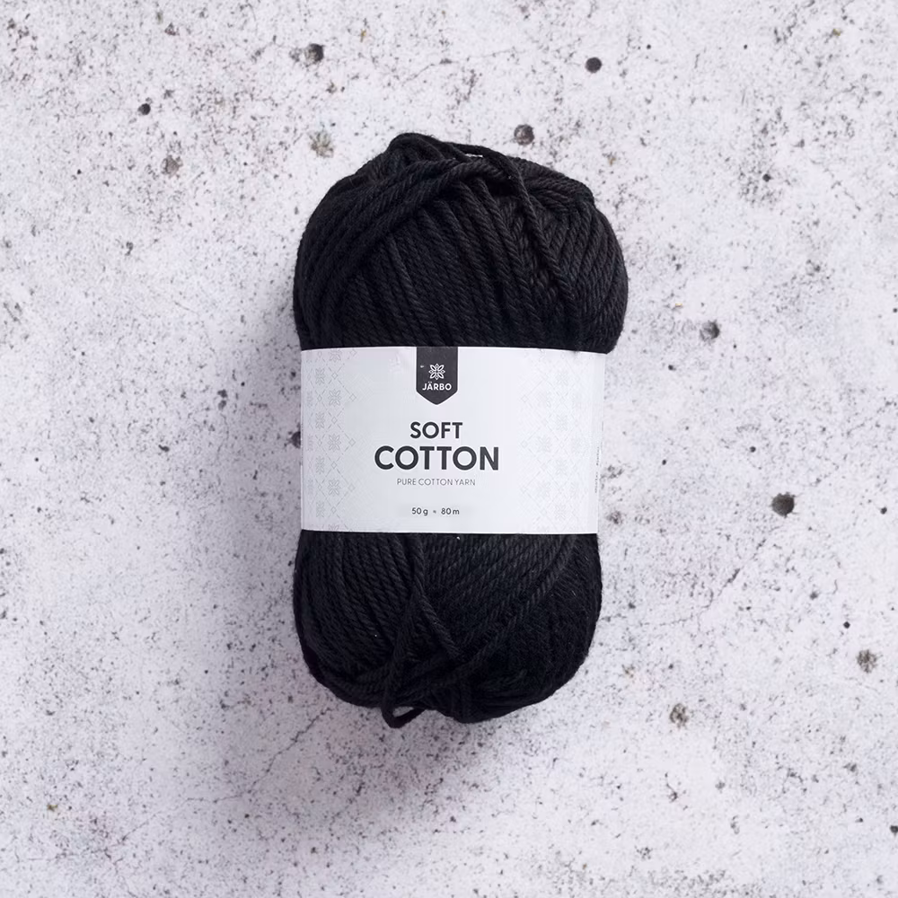 Soft Cotton är ett av Järbos mest populära bomullsgarner. Mjukt och följsamt, i en härligt pigg färgpalett med mycket att välja på. Soft Cotton är förstahandsvalet för dig som söker ett lite tjockare bomullsgarn som snabbt blir till roliga pyssel och virkprojekt. 50 g = 80 m. 100 % bomull.