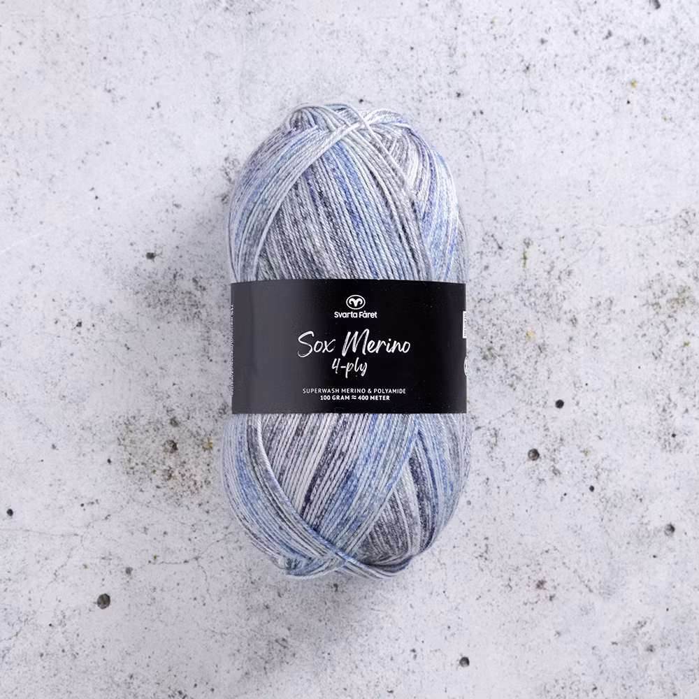 Svarta Fåret Sox Merino 4 ply i Nordic Noir är ett tunt merinosockgarn som passar perfekt för stilrena sockor och accessoarer. Merinoullen ger mjuk komfort och polyamiden hjälper sockorna att tåla slitage.