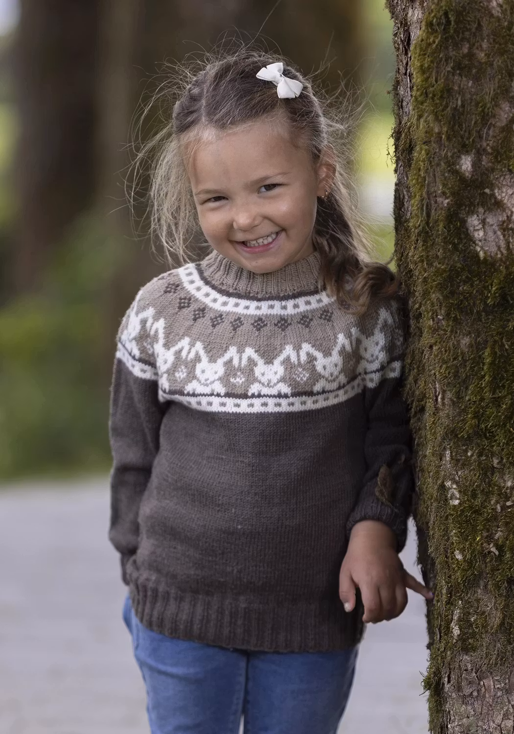 Här hittar du 10 modeller (16 varianter) med lekfulla motiv – perfekta barntröjor i mjuk merinoull.