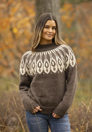 Viking Garn Katalog 2433 hittar du flera snygga stickade tröjor i Viking Garn raggen samt en pläd och kudde.